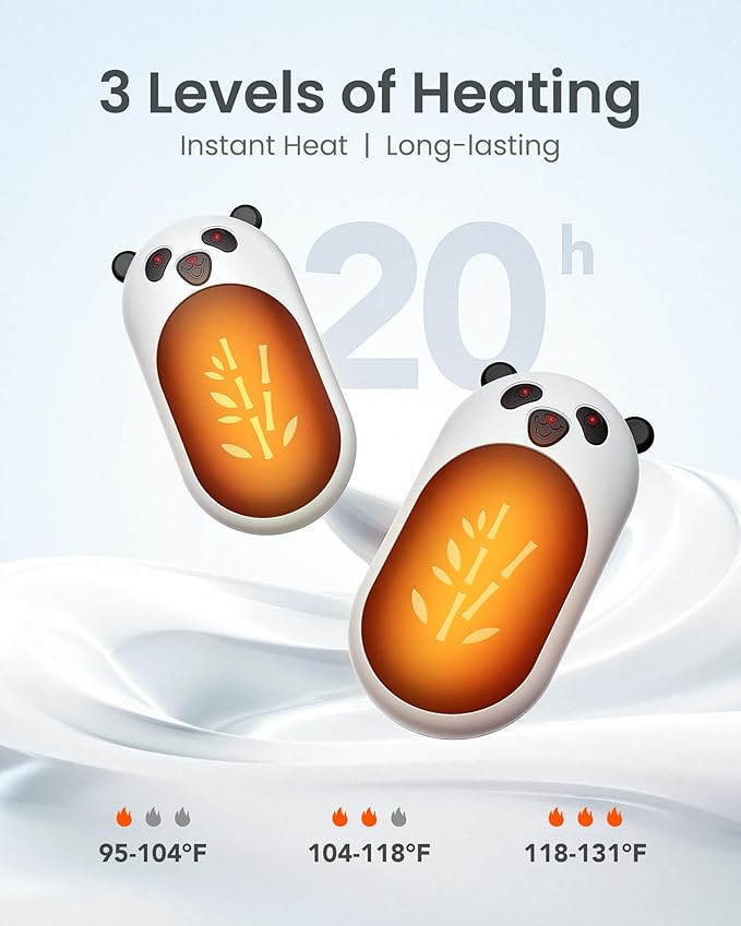 - 【20 Hrs*2 of Continuous Warmth】3 heating levels can be selected with just a simple button. Heats up to 130°F in just 2 seconds. The 3000mAh*2 capacity battery can last up to 20 Hours *2 of warmth.