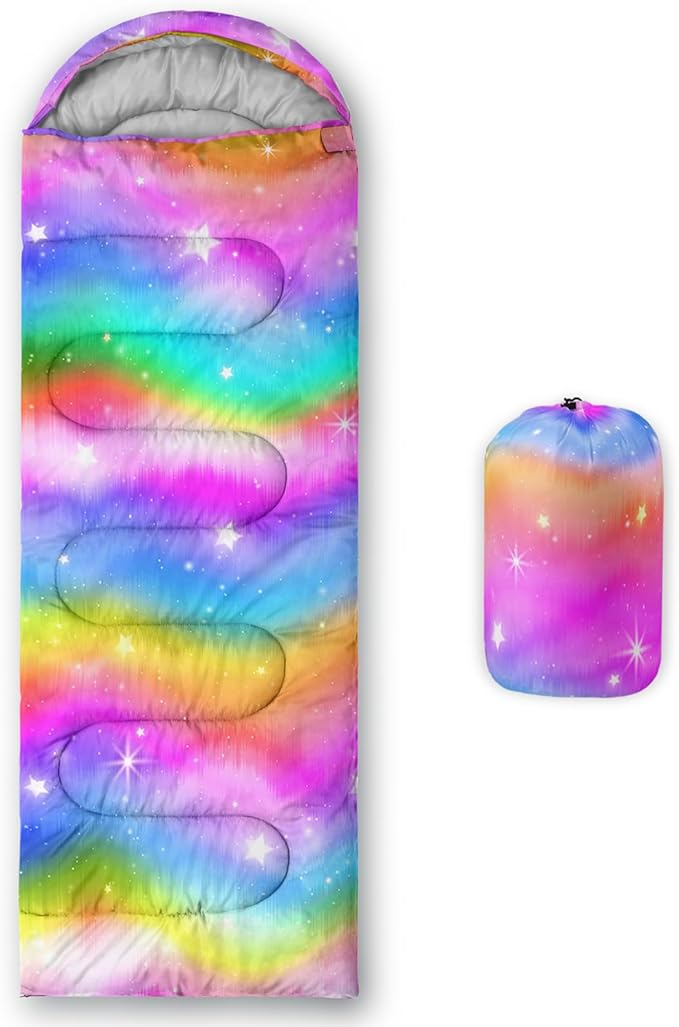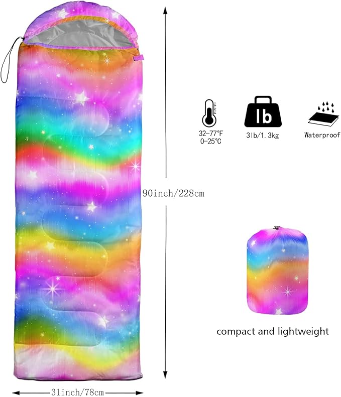 BSNTHO Rainbow Camping Sleeping Bags,3 Season Warm & Cool Weather,Lightweight,Waterproof Sleeping Bags for Adults & Kids,Traveling,and Outdoors,Camping Gear Equipment,31x90inch