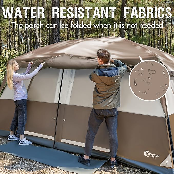 PORTAL 6 | 8 | 10 Person Family Camping Tent with Porch, Big Family Camping Tent with Tall Height, Good Ventilation, Water Resitant Large Tent for Outdoor Camping, Backyard