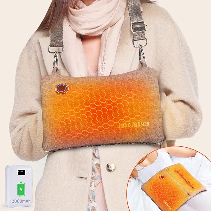 Hand Warmers Pouch Rechargeable for Hot Hands Body Warmers Pain Relief, 12000mAh Graphene Heated Gloves Battery Operated Heater with 3 Levels & Double-Sided Heating Gifts Christmas for Women Mom Dad