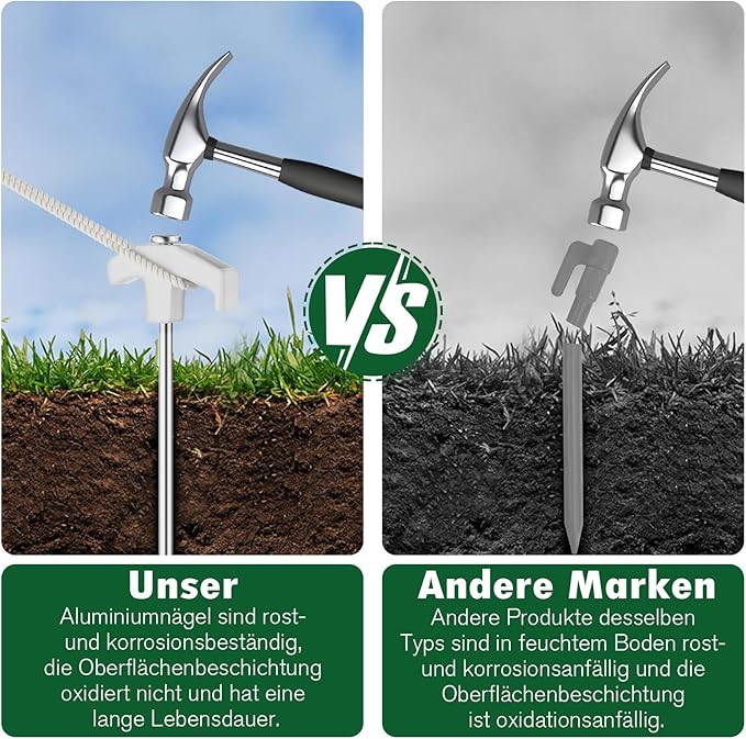 - Better Use: Please do not nail the tent pegs vertically to the ground. ✔️ Form a 60 degree angle between the tent stakes and the ground. ✔️Please leave the tent pegs about 4cm above the ground. ✔️Plenty enough space to pull the cord. ✔️Use the hook to tension the line. ✔️Use the holes to pull out the tent pegs.