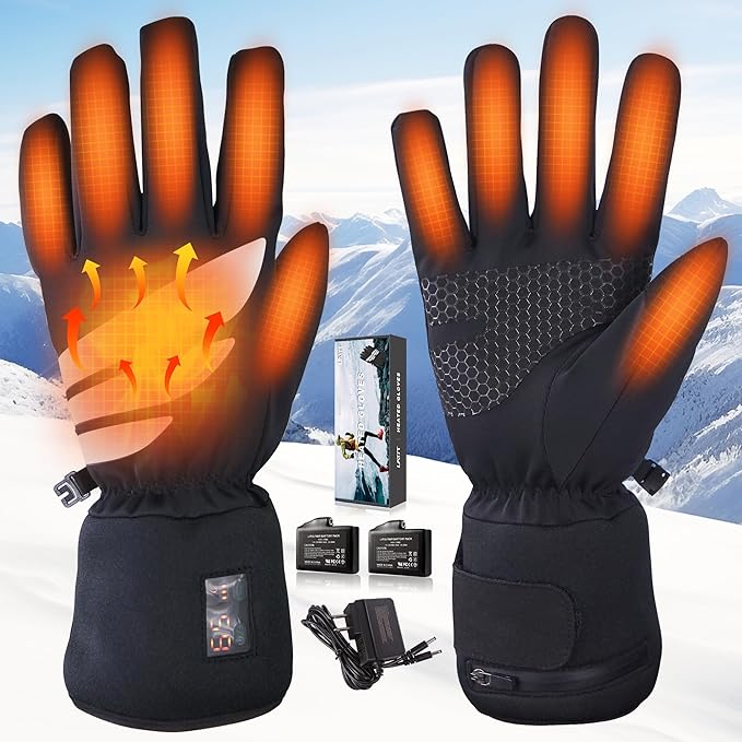 - 【UPGRADE Heated Gloves】With a more breathable inner lining than hand warmers and an outer layer of high-tech, waterproof, and wind-resistant material, these gloves excel in winter warmth. The rechargeable battery gloves feature far-infrared fiber heating elements that cover the entire hand, including fingertips, ensuring quick heating and adjustable temperatures to keep you warm in extreme cold. Ideal for those with Raynaud’s, arthritis, poor circulation, and stiff joints.