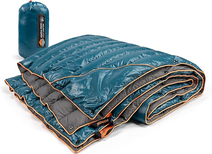 - Crafted for Exceptional Quality: The Alplive R300 camping blanket boasts meticulous craftsmanship, with tough 20D ripstop nylon known for its exceptional durability and water resistance. Its inner lining, as soft as a sigh, cradles you in luxurious comfort. Drift into dreams wrapped in its plush, cozy down-filled embrace. Awaken refreshed, ready for new horizons.