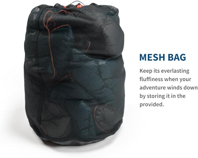 - Unwind in Cozy Comfort: Our camping blanket keeps you snug and warm, thanks to its premium 650 fill power down. Whether it's a chilly night under the celestial canopy or a summer breeze by the lakeside, it's your trusted companion. When your adventure rests, tuck it into the included mesh bag, ensuring its perpetual fluffiness.