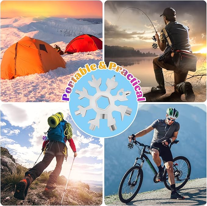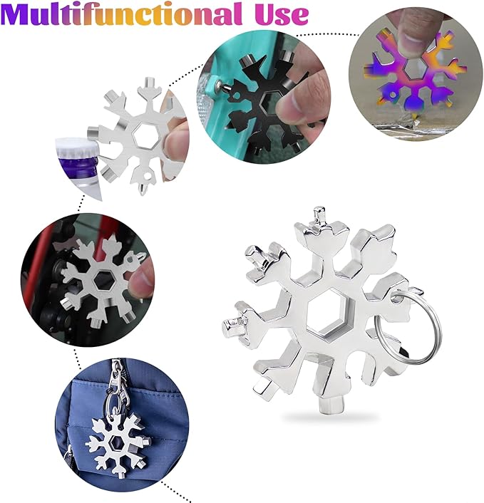 - 【Multiple Use】This 18-in-1 snowflake tool can be used to open beer bottles, open cartons, turn the screw, secure snowboards, bikes, toys and more. It can also be used for outdoor activities, such as traveling, camping, boarding, fishing, rescue and other things that can be used.