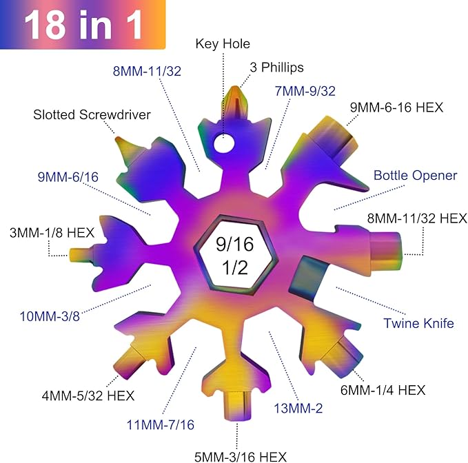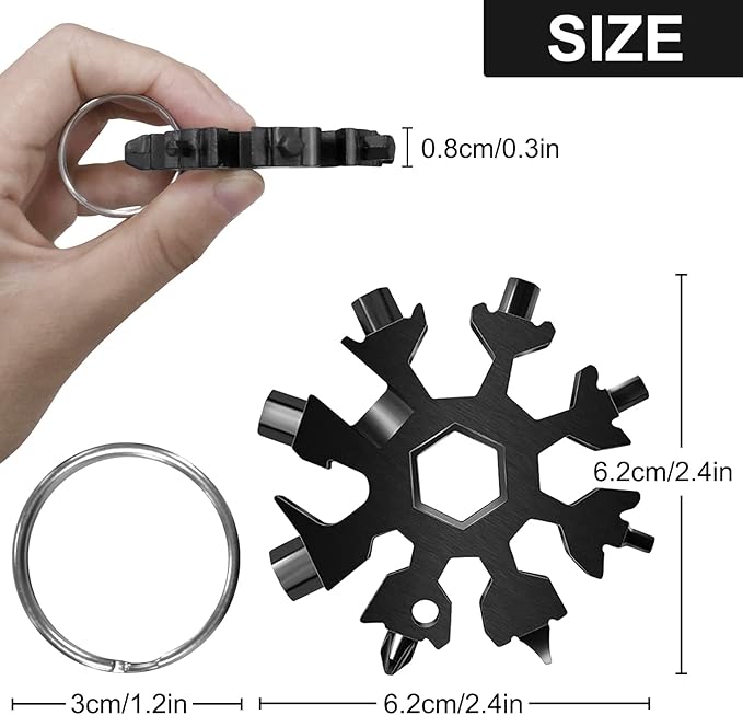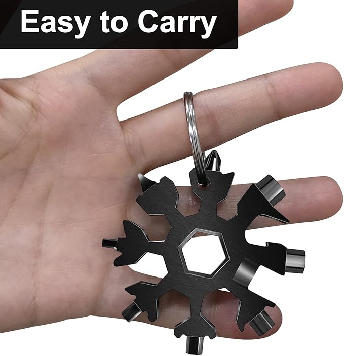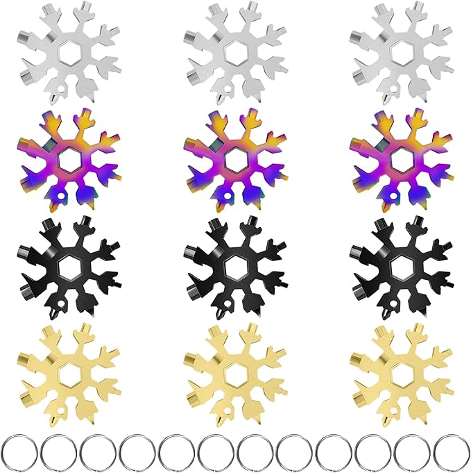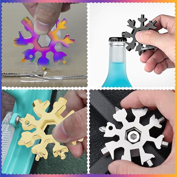 - Snowflake-Shaped Design: This 18-in-1 snowflake multi-tool is made of stainless steel, strong and durable, not easy to rust, bend or dull. The unique snowflake-shaped design, as a Christmas stocking stuffer, it can be hung on your Christmas tree to add a festive mood.