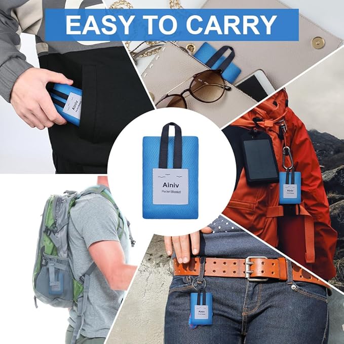 Ainiv Picnic Blanket, Mini Pocket Beach Mat 27.5 x 43.3IN (1-2 People) Foldable, Lightweight Waterproof Sand Free, Foldable Thin Ground Sheet for Outdoor Camping Hiking Travel - with Hand Strap