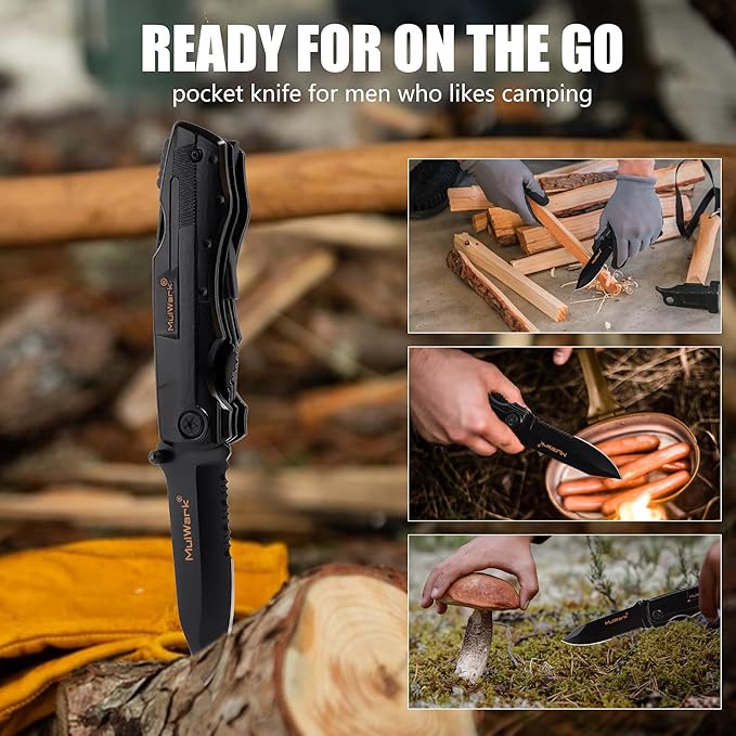 MULWARK Folding Multitool Pocket Knife 12 in 1 Survival Knife - Pocket Knife for Men - Gift for Men, Hunting Knife, Tactical Camping Knife - Black