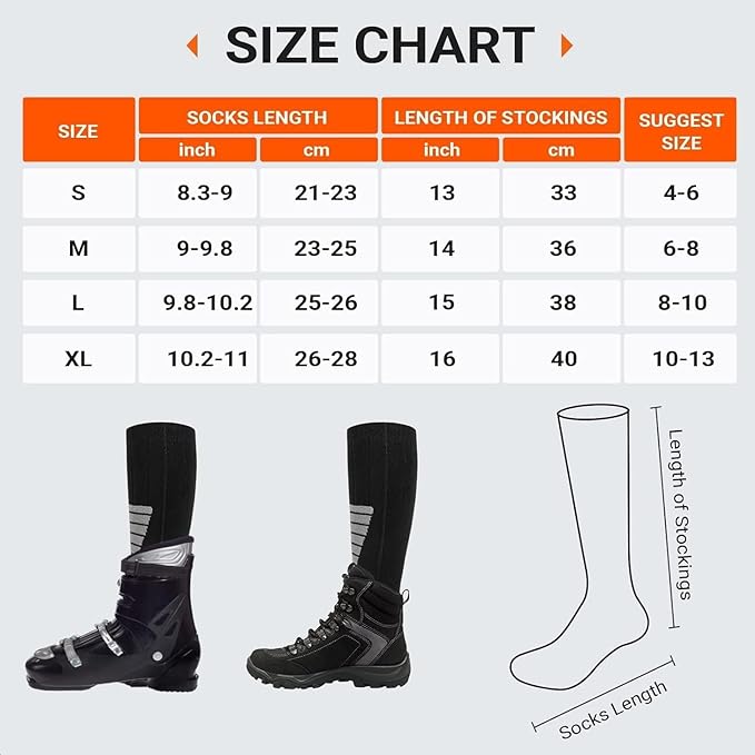 - Perfect Gift for Winter Activities: The rechargeable heated socks are suitable for various outdoor activities in winter, such as camping, hunting, hiking, skating, fishing, motorcycle, cycling, outdoor work, etc. Heated socks bring warmth to your loved ones, parents and friends. They are the perfect warm gifts for Thanksgiving, Christmas and Valentine's Day. Heated socks can also be used as Christmas stocking fillers