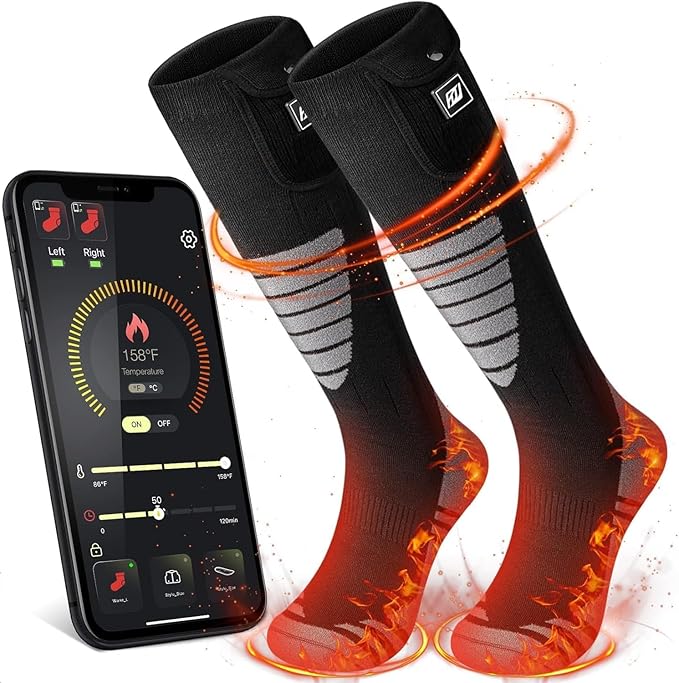 Heated Socks for Women Men Rechargeable Washable, Battery Electric Heated Socks Foot Warmers with APP Control for Skiing Hunting Riding Camping Fishing Hiking Outdoor Work