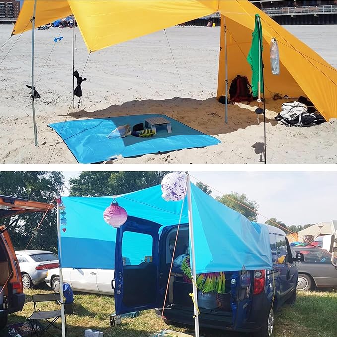 - 🏕 TENT GROUNDSHEET USE: The tear-proof ground tarp protects your tent from dust, dirt and sharp objects. Suitable for different ground conditions in camping, can be used as picnic mats, tent footprint, beach blanket, car car-seat protector etc