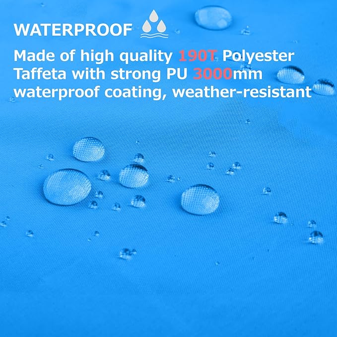 - 🏕 WATERPROOF & UV PROTECTION: Made of 190T ripstop polyester taffeta fabric, the waterproof coefficient is up to 3000 mm, which protects you and your belongings from moisture and provides lasting protection. The sunshade can effectively block ultraviolet rays and protect skin from sunlight damage
