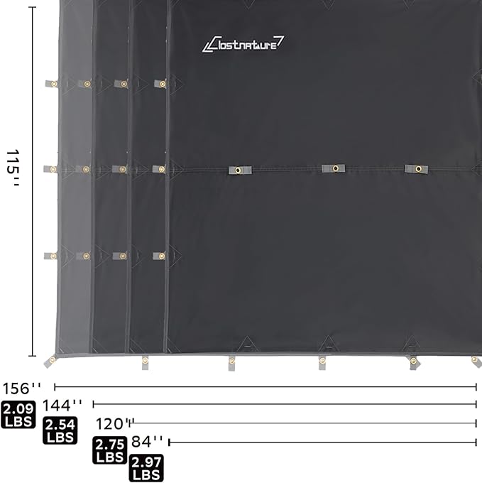 - STURDY SUPPORT: Inside the package, you'll find 6 robust triangular aluminum stakes, offering exceptional stability and accommodating various terrain conditions. These stakes are thoughtfully paired with 6 adjustable reflective guy lines, each equipped with tensioners, ensuring a steadfast and secure canopy setup, even in the face of adverse and stormy weather conditions. You can also place the black ground tarp under the tent to use it as a tent footprint