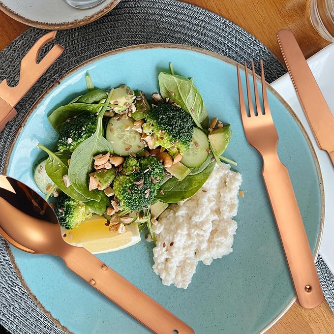 - Premium Quality copper cutlery set: Made of high-quality copper material, this Travel flatware set is durable and long-lasting.