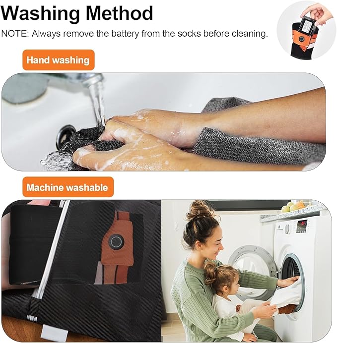 - 🧦【Long-Lasting & Powerful Battery】Equipped with a 7.4V 22.2WH battery that can be used continuously for up to 10 hours after a full charge. Our batteries are coated with PVC film coating technology, which makes the batteries smaller in size and lower in weight, and better fit the socks and not easy to fall out.