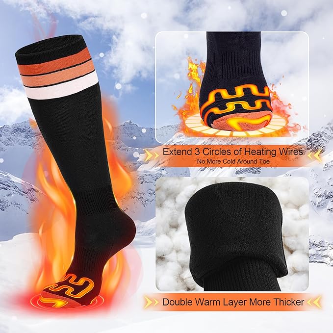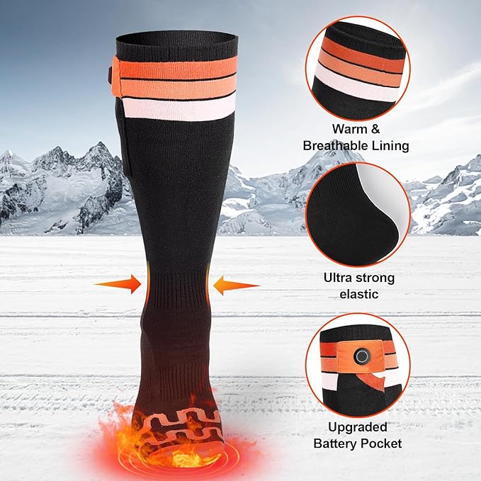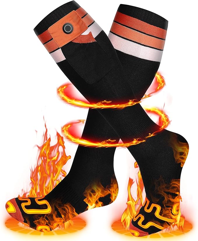 - 🧦【Suitable for Various Outdoor Activities】Wearing these heated socks in winter means saying goodbye to the cold. They are perfect for hunting, skiing, fishing, hiking, dog walking, snowboarding, motorcycle riding, cycling, and sports events, ensuring rapid warmth throughout your feet. Heated socks keep you warm and comfortable all day, making them the best birthday, Halloween, Christmas, and New Year surprise gifts for parents, lovers, and friends.