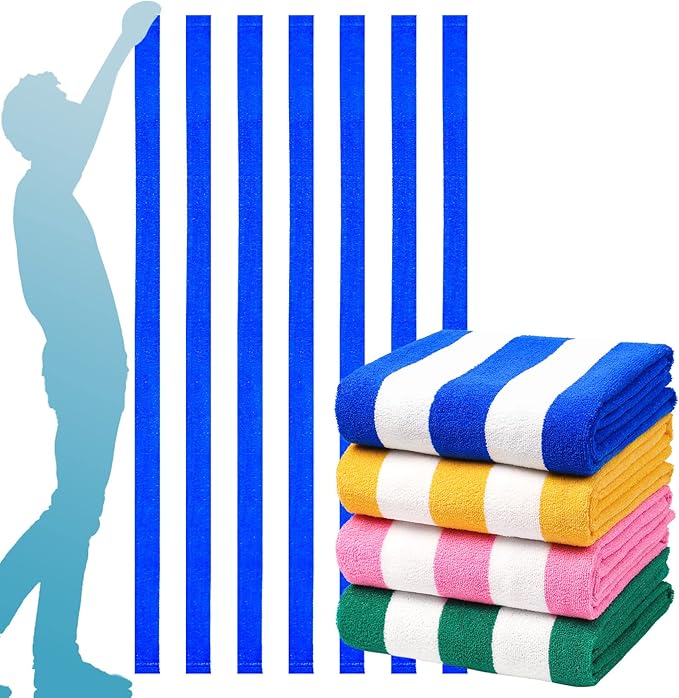 4 Packs Stripe Beach Towel Thin Terry Oversized XL Extra Large Big Clearance Pool Travel Blanket Cruise Accessories Essentials Super Soft Camping Swim Bath Towels Girls Men Women Adults Gift Blue Pink