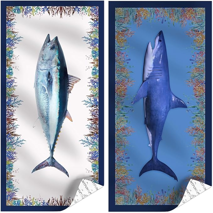 2 Packs Luxury Oversized Microfiber Beach Towel 36x72 Inch Shark, Double Sided Quick Dry Sandrpoof Compact, Adult Extra Large Chair Towel Over Bulk Set Sand Free Thin Sand Repellent Anti Repels