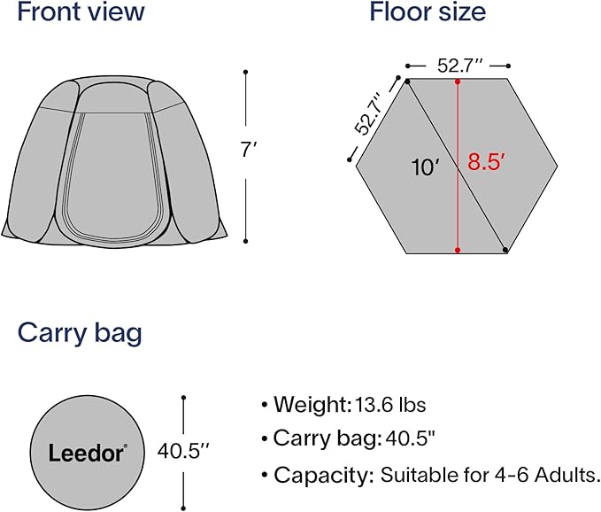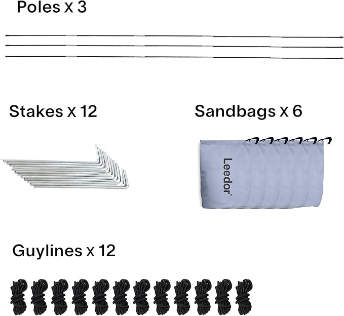- 【Lightweight, Spacious & Stable】Designed to comfortably accommodate 4-6 adults, the Leedor outdoor event Tent is incredibly lightweight at just 15 lbs, a mere third of the weight of comparable outdoor tents. For enhanced stability in windy conditions, the patio tent comes equipped with 6 elongated sandbags, 12 guylines, and 12 metal mounting stakes. These supplementary accessories offer crucial support, ensuring the outdoor tent remains secure in diverse weather conditions.