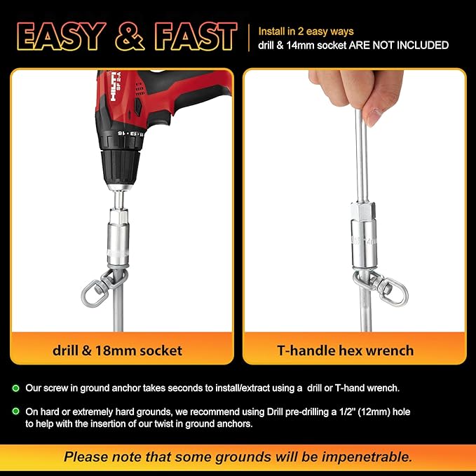 - Easy to Install: the earth anchors are easy and convenient for you to install, with the help of the T handle hex wrench, the pointed ends can easily penetrate into the soil, greatly improving the efficiency, saving your time and energy