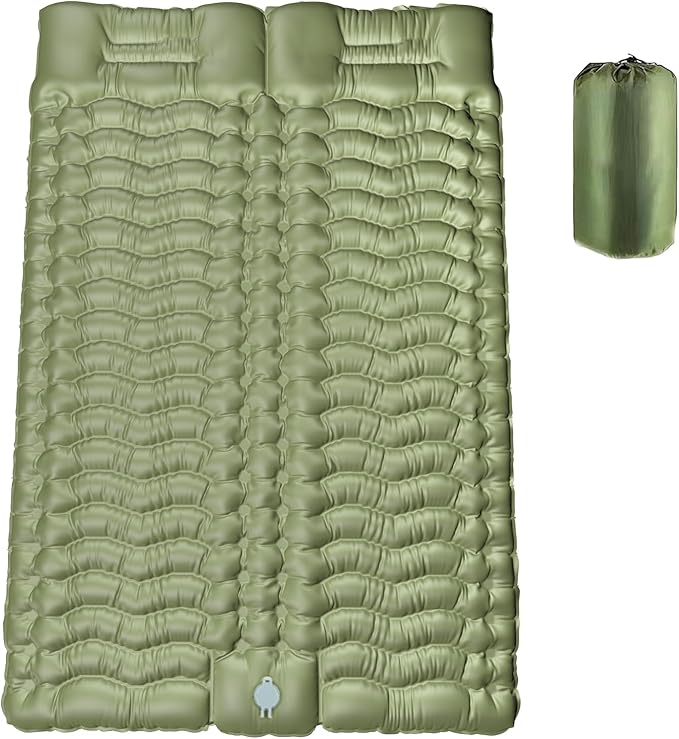 Double Sleeping Pad for Camping, Self-Inflating Sleeping Mat with Built-in Foot Pump, Air Mattress with Pillows, Foldable Camping Sleeping Pad for Hiking, Backpacking, Traveling (Green)