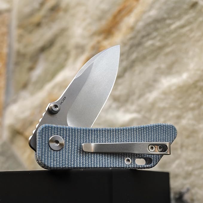 - Handle:Non-slip blue micarta scale lightweight handle.Deep carry reversible pocket clip.