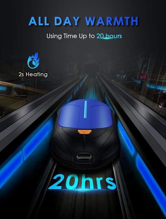 - Fashion & COMFORTABLE DESIGN- Uses a sports supercar exterior design, thi spalm size portable hand warmer is warm and smooth, can easily hold it in hands and not afraid of it slipping off. It's pretty light weight too, so you can comfortable keep them in your pockets.