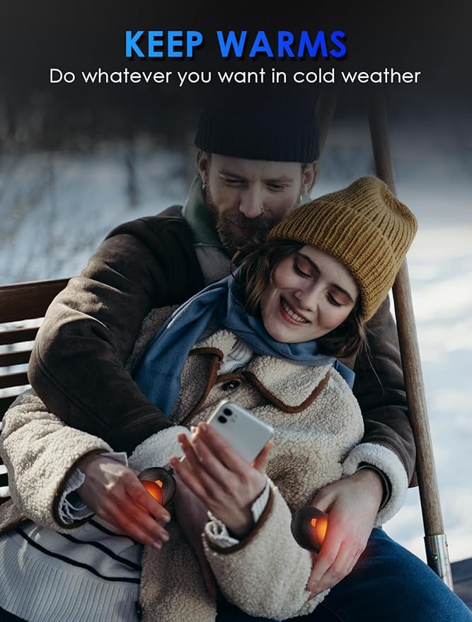Hand Warmers Rechargeable 2 Pack, Electric Hand Warmers with 20Hrs Long Heating, 2 in 1 Portable Handwarmers Cordless USB Pocket Hands Heater Outdoor Warm Gift for Hunting, Golf, Camping, Ski