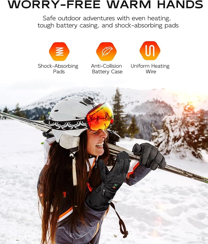 - [The Perfect Companion for Outdoor Activities] Bid farewell to numb fingers and embrace the warmth brought by these gloves. Designed with advanced heating technology, these heated gloves are perfect for various activities such as skiing, hiking, snowboarding, or even everyday commuting in cold weather. Wherever you go, they will provide unparalleled warmth and comfort for you.
