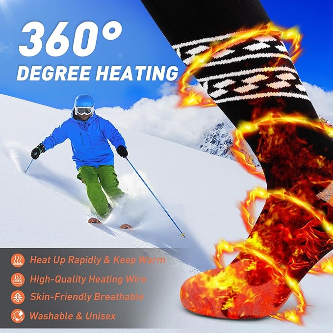 Heated Socks for Men Women, Rechargeable 5000mAh Battery Electric Heated Socks Washable Winter Socks for Foot Warmer Skiing Camping Hiking
