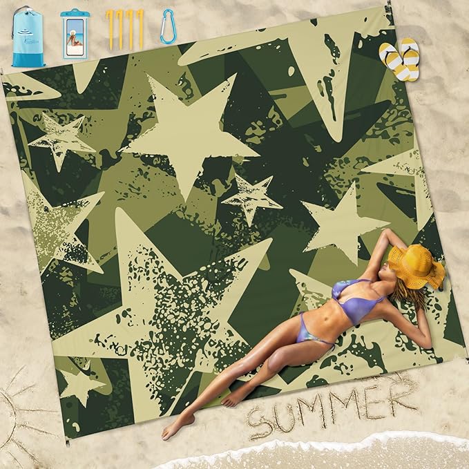 - 🍃BIG BEACH BLANKET:Package includes 1 carabiner,4 ground stakes for 4 anchor loops,to keep it from blowing around on the beach.Perfect for outdoor uses,it will remain secure and stable on windy days.