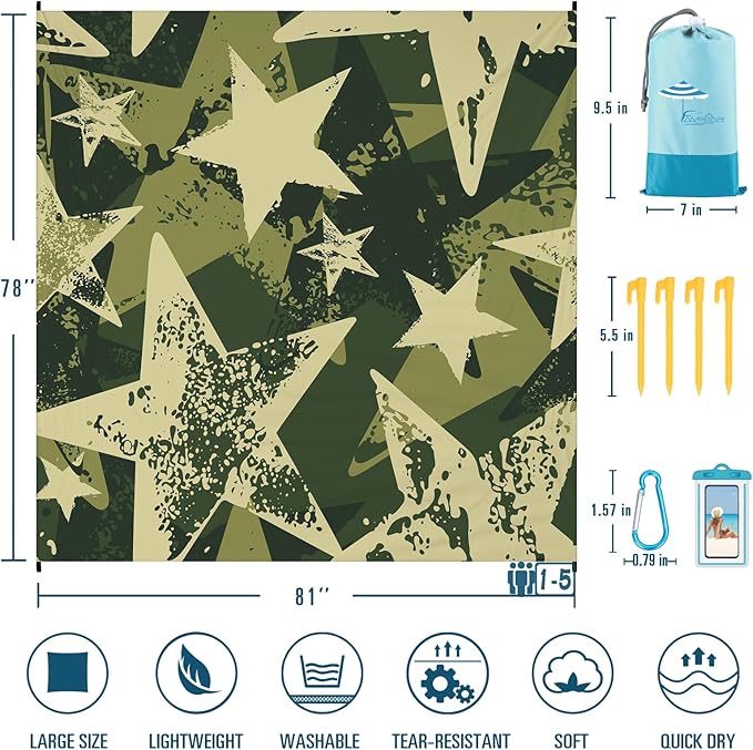 - 🌴BEACH BLANKET SANDPROOF WATERPROOF:78''×81'' fits 1-5 adults.Made with ripstop 210T polyester.The sand will fall down when you shake the blanket.The little water left behind will dry out in minutes.