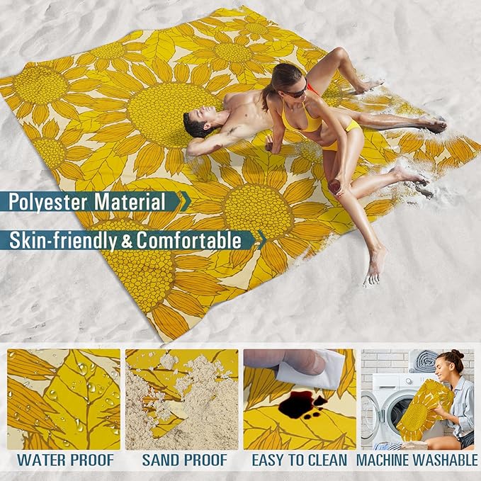 - 🏄LARGE BEACH BLANKET: Lightweight and compact after fold into a small size.Easy to carry.Washable by washing machine or hand.More professional fabrics and sturdy stitching.Small and Mighty!