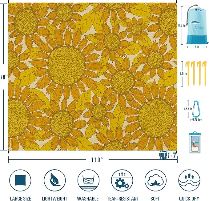 - 🌴BEACH BLANKET SANDPROOF WATERPROOF:78''×110'' fits 1-7 adults.Made with ripstop 210T polyester.The sand will fall down when you shake the blanket.The little water left behind will dry out in minutes.