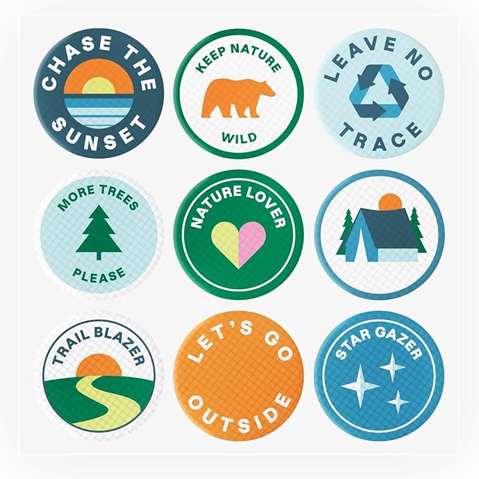 - Fun, Kid-Friendly Prints - “Outdoor Adventure Badges” collection comes with 27 different designs for kids & adults who love the great outdoors