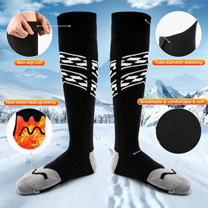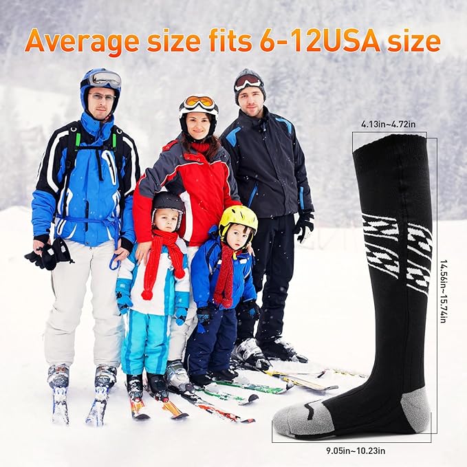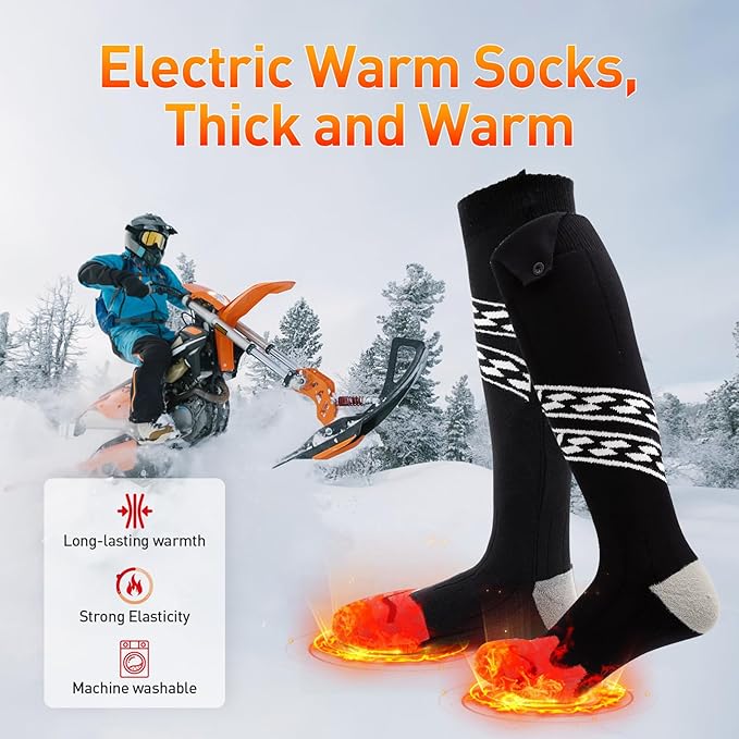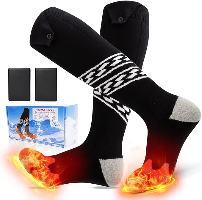 - 【Warmest Gift in Winter】Rechargeable heated socks are suitable for all kinds of outdoor activities in winter, such as camping, hunting, hiking, skiing, skating, fishing, snowboarding, snowmobiles, motorcycles, bicycling, outdoor work and so on. Electric heated socks bring warmth to your lovers, parents and friends, they are the best warm gifts for Thanksgiving, Christmas and Valentine's Day, winter socks can also be used as Christmas stocking stuffers!