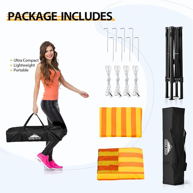 - EASY TO SETUP AND PUT AWAY: The EAGLE PEAK pop up system is more flexible and makes setup easy. The frame glides when opening and closing, enabling one person to easily open and close the canopy .