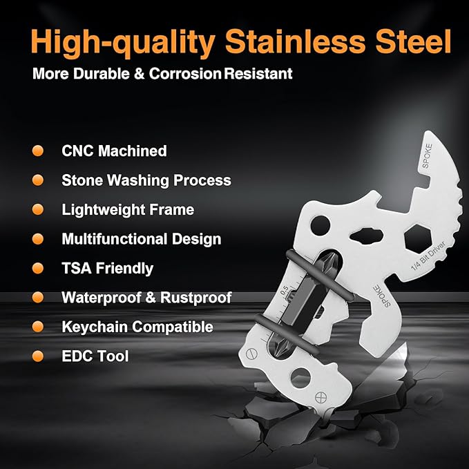- All-In-One Tools - This bike multitool features Phillips & Flathead Screwdrivers, Lanyard Hole, Spoke & Hex Wrench, Bottle Opener, Ruler, Hook Remover, Bit Driver, Serrated Edge etc. for removing nails, measuring, bike repairing, etc.