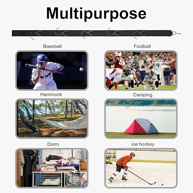 - 【Portable & Compact】This storage strap is made up of a premium nylon strap and stainless steel hooks.Hockey Gear Drying Rack is Lightweight, easy to pack, and bring anywhere! Unlike the bulky hockey tree drying rack, this portable hockey gear drying rack won't take up any extra space in your luggage or backpack.Portable Hockey Hanger will be a good gift for outdoor camping lovers to collect their wet clothes