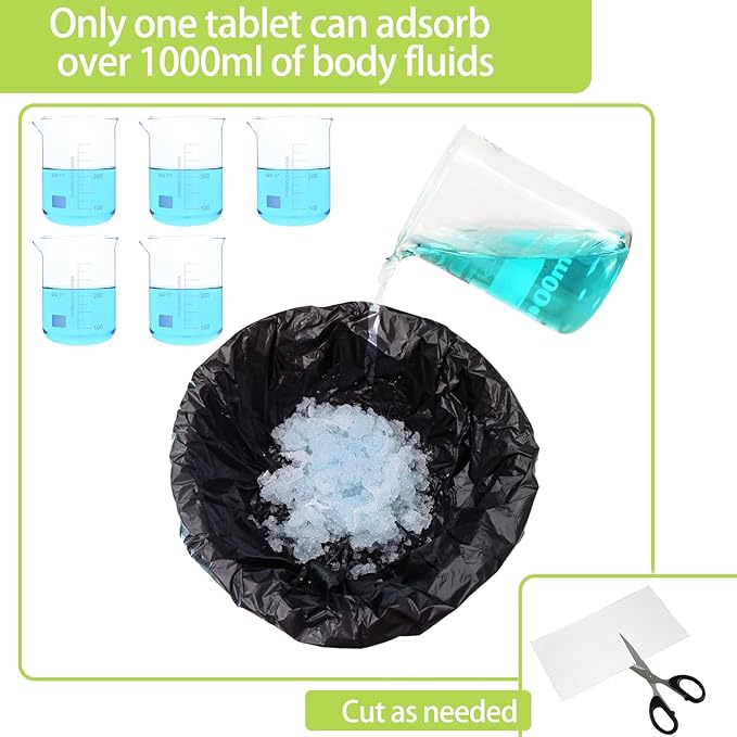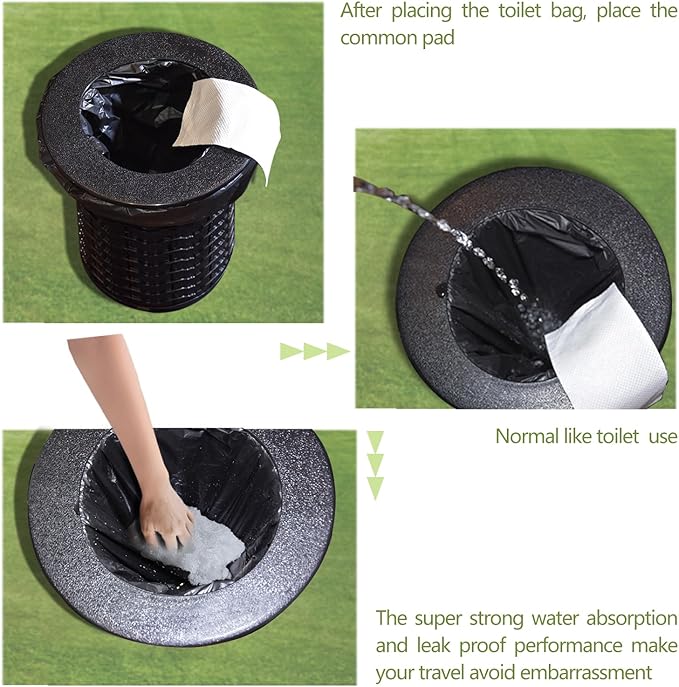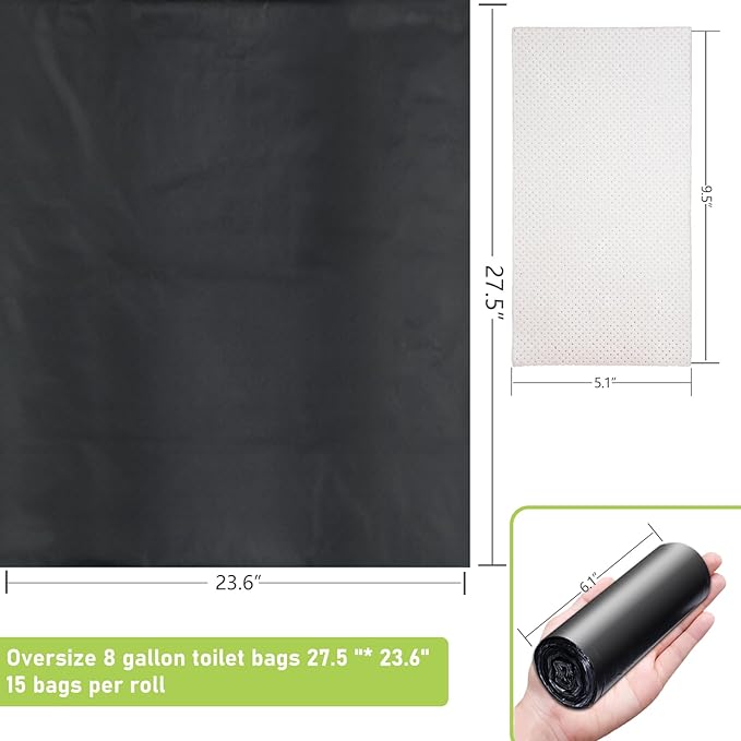 60 portable toilet bags with 30 commode absorbent pads,8 Gallon camping toilet waste bags for 5 gallon bucket,1mil bildegradable porta potty luggable loobags for adults travel