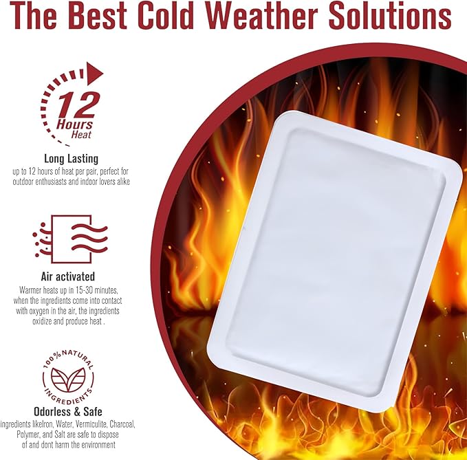 - DISPOSABLE LARGE BODY WARMERS MULTIFUNCTIONAL: These hand warmers are versatile companion for your winter adventures. Whether you're hiking, skiing or just being outdoors, our warm gloves will keep you cozy in the cold. They are a true winter essential and belong in every outdoor enthusiast's gear bag.