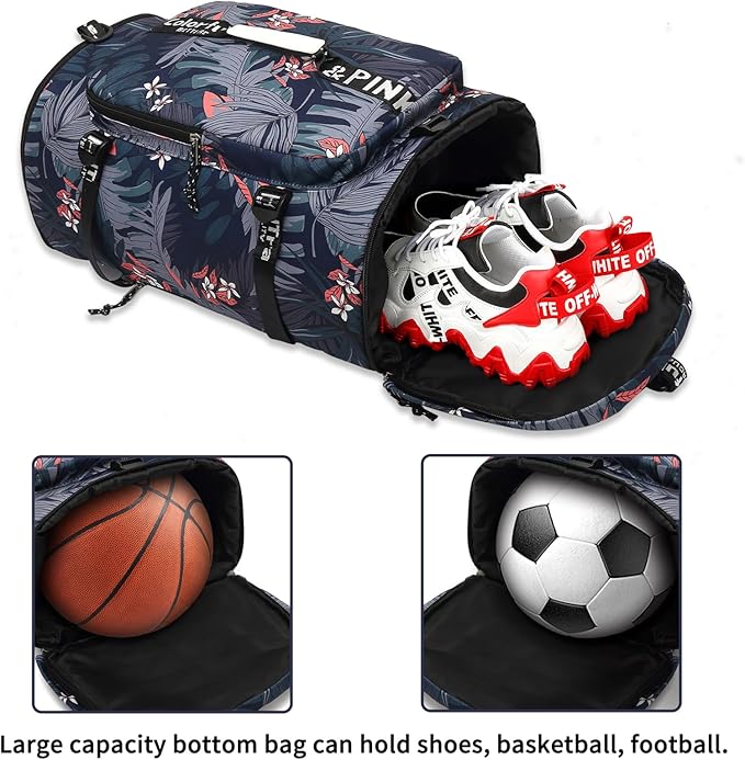 - ★【Separate Shoe Compartment or Ball Compartment 】 Separate bottom compartment for shoes, or basketballs, or footballs, or dirty clothes, allowing you to switch freely in different states of travel, business trips and outdoor sports.