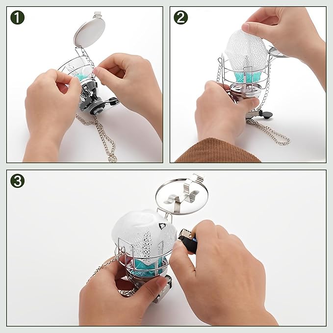 - 【What Should Be Noticed】Be careful to fix the metal clips on the upper and lower wicks, do not use too much force, so as not to be torn off. The lantern mantles that turn white after burning are easy to shatter. When replacing a new lantern mantle, be careful not to invade the used lantern mantle into lantern and damage your lantern.
