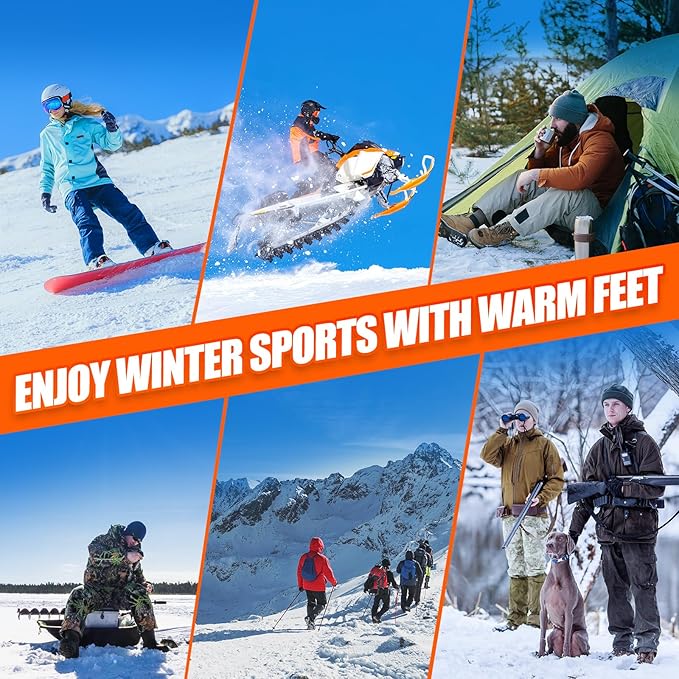 - 🔥【Ideal for Winter Outdoor Indoor Use】 These winter foot warmer socks are super soft, cozy, breathable, quick-drying, and elastic-thicken. Heating socks can keep your feet warm, promote blood circulation and reduce soreness. The rechargeable heated socks are your go-to choice for hunting, skiing, camping, fishing, hiking, motorcycle, skating, or snowboarding. Say Goodbye to cold feet and enjoy the winter outdoors to the fullest!