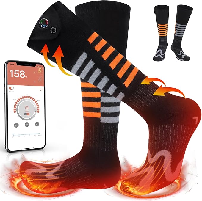 Heated Socks, Rechargeable Heated Socks for Men Women, Battery Powered Foot Warmer with APP Control for Winter Hunting Skiing Camping Hiking