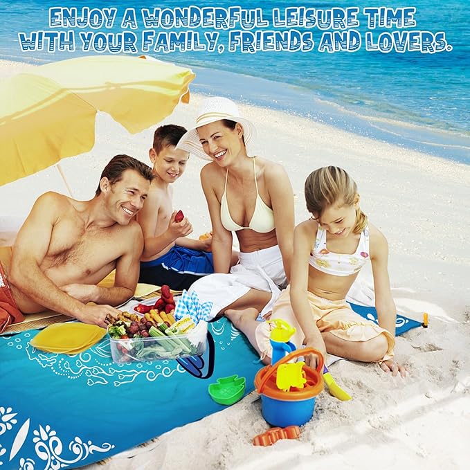 - 🌊BIG BEACH BLANKET:Durable and fast drying,can also be used as a canopy,sunshade,tent,toddler crawling mat,picnic mat,first aid mat,better professional fabric sewing without irritating the skin,providing you a good sense of use.