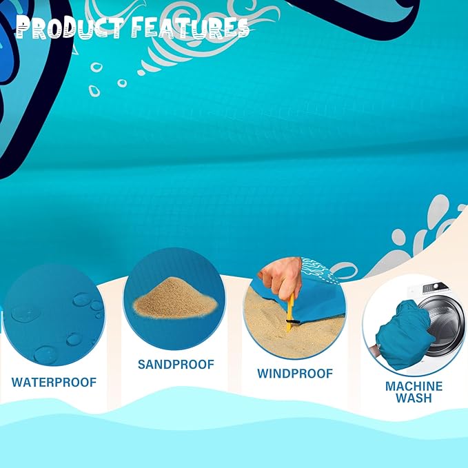 - 🏕BEACH MAT BLANKET WATERPROOF:Effectively waterproof sandproof and tear resistant.You only need to gently shake it while the sand will fall off.Keep the blanket clean at all times,can be washed by hand or machine