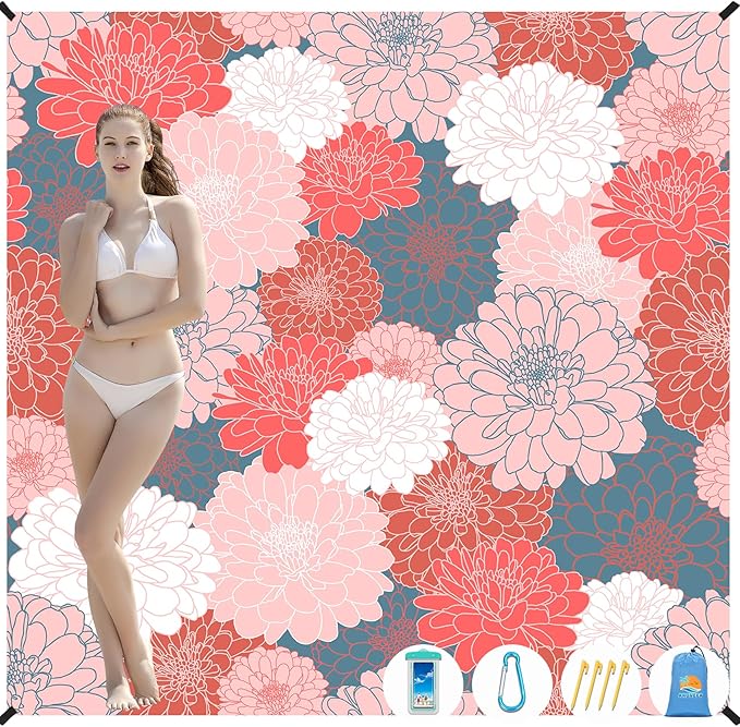 - 🛒PACKABLE SAND RESISTANT BEACH BLANKET MAT:The package includes 1 beach blanket,4 ground stakes for windproof,1 carabine for carry.You can enjoy a wonderful outdoor time with your family.If you have any questions,please don't hesitate to contact us.