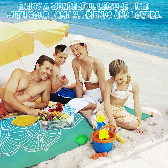 - 🌊BIG BEACH BLANKET:Durable and fast drying,can also be used as a canopy,sunshade,tent,toddler crawling mat,picnic mat,first aid mat,better professional fabric sewing without irritating the skin,providing you a good sense of use.