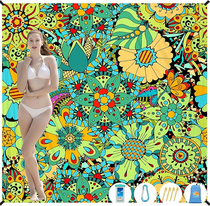 - 🌊BIG BEACH BLANKET:Durable and fast drying,can also be used as a canopy,sunshade,tent,toddler crawling mat,picnic mat,first aid mat,better professional fabric sewing without irritating the skin,providing you a good sense of use.